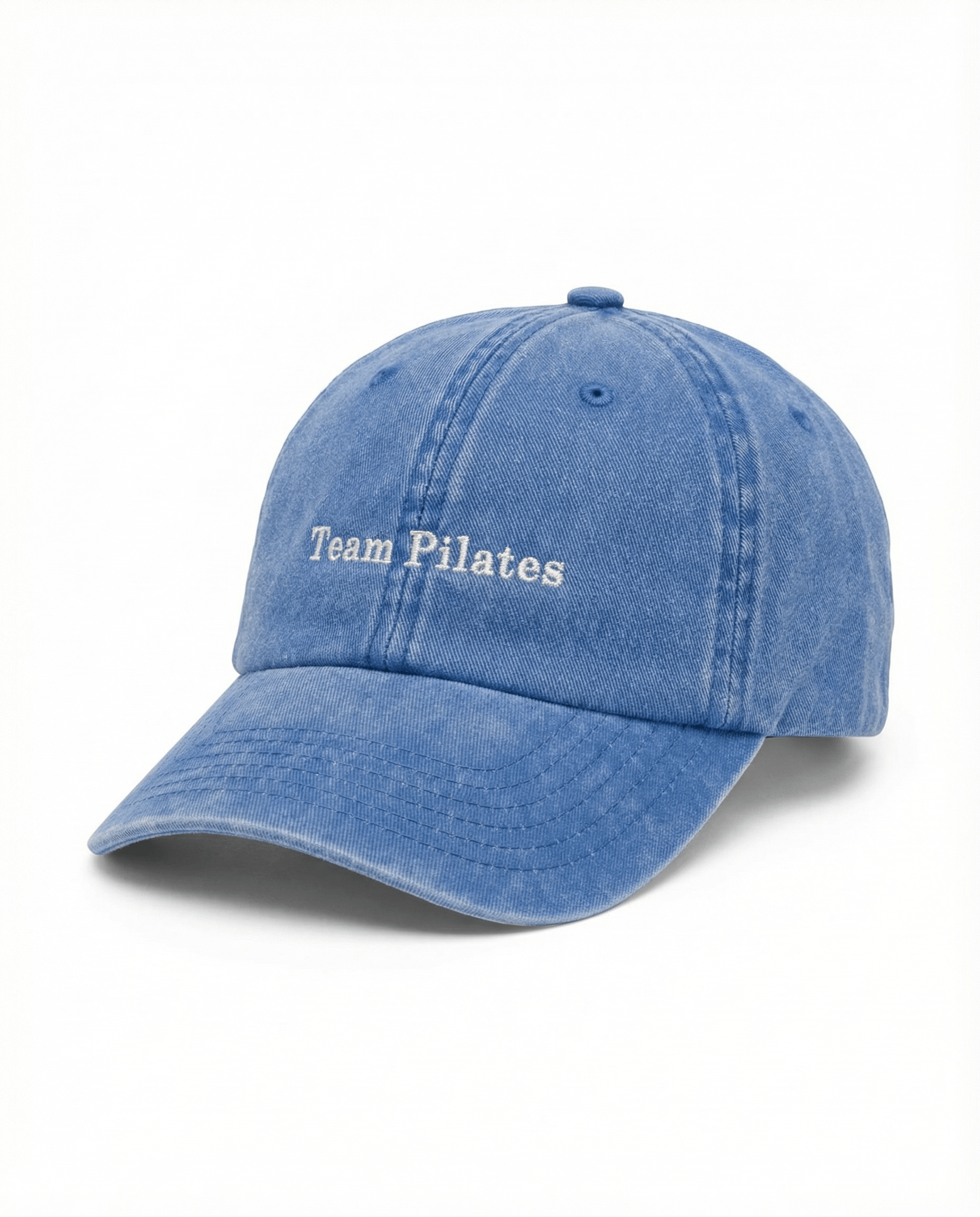Stylish, soft, and with attitude: our Cornflower (blue) cap is the perfect statement piece for anyone who loves Pilates, on and off the mat/reformer. Made from high-quality cotton, with a classic dad cap fit and embroidered lettering in white. Available in Cornflower blue with various slogans.